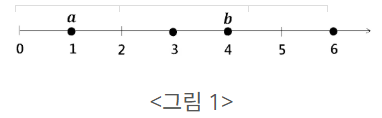직선 위에 위치를 나타내는 0, 1, 2, ...와 같은 음수가 아닌 정수들이 일정한 간격으로 오른쪽 방향으로 놓여 있다. 이러한 위치들 중 N개의 위치에 하나씩 점들이 주어진다(<그림 1>). 주어진 점들의 위치는 모두 다르다. 두 점 사이의 거리는 두 점의 위치를 나타내는 수들의 차이이다. <그림 1>에서는 4개의 점이 주어지고 점 a와 b의 거리는 3이다.